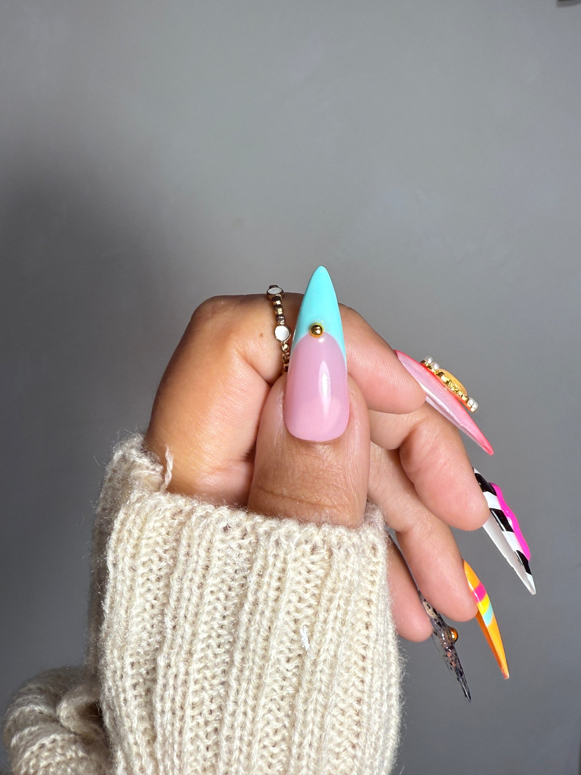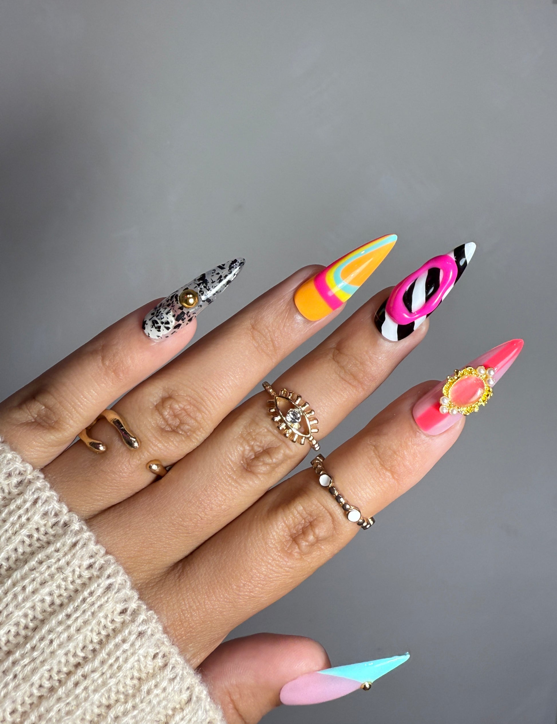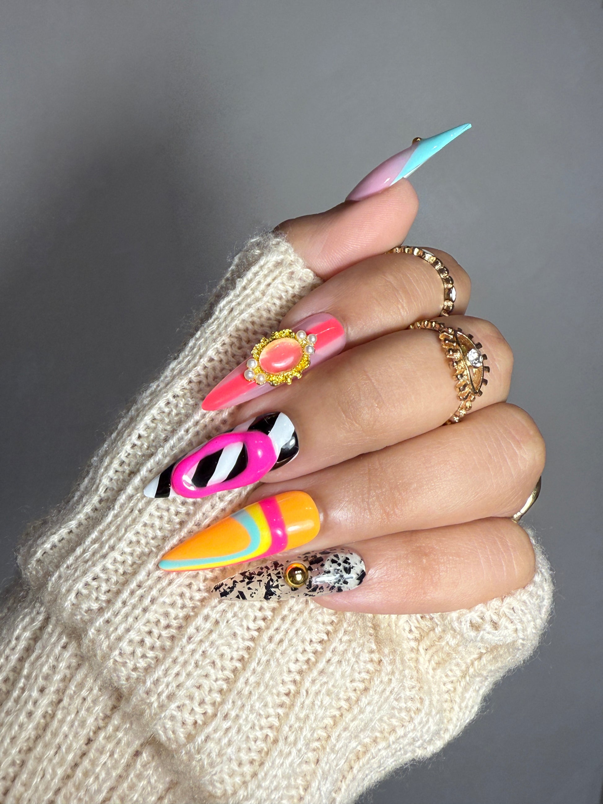 Step into your main character era with Pop Art Playground, a vibrant gel press-on set made for the fearless and fashion-forward. From sculpted swirls to bold prints and regal gems, each nail is a tiny masterpiece — guaranteed to turn heads and spark compliments.